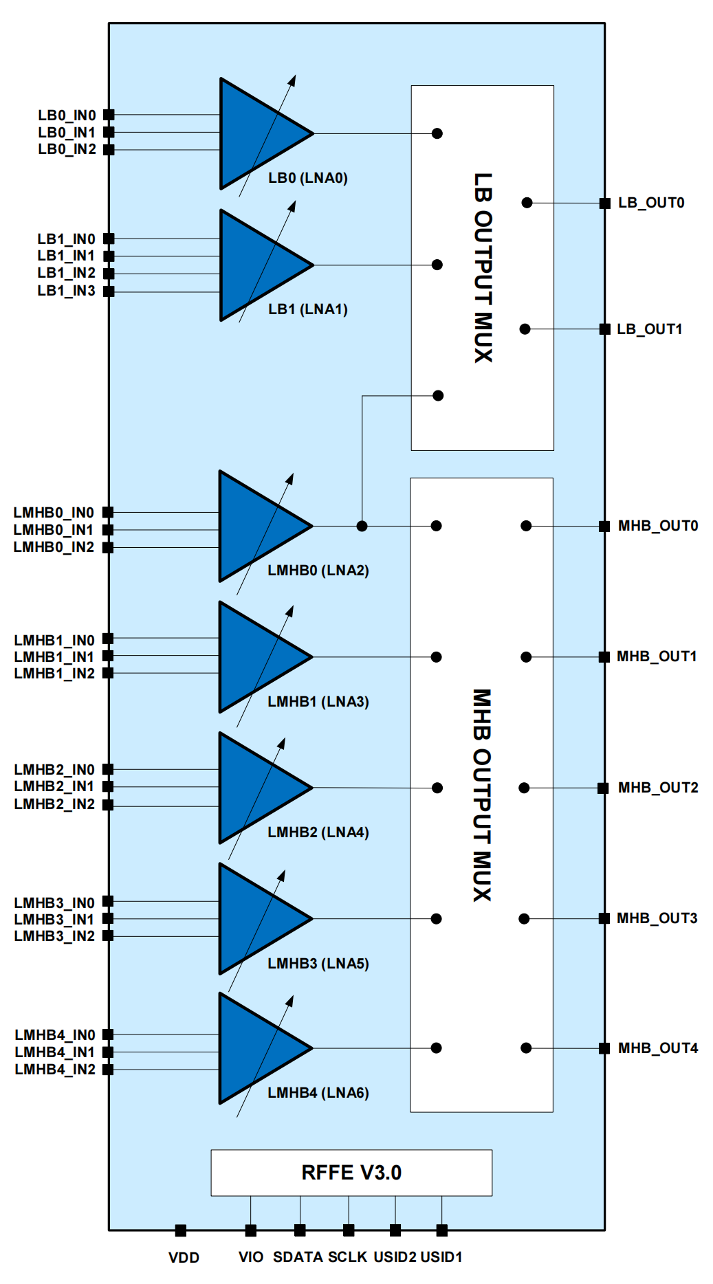 - FUNCTIONLNA bank for multi-band applications 7x LNA